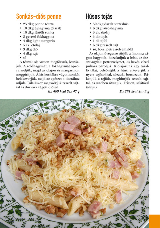 A kiadvány a fogyni vágyó cukorbetegek és nem cukorbetegek részére is hasznos segítség. A túlsúly jelentős rizikófaktor a cukorbetegség, a szív- és érrendszeri megbetegedések (magas vérnyomás, szívinfarktus, stroke) kialakulásában. A testsúly csökkentése megelőzheti ezeknek a bajoknak a kialakulását. A receptgyűjteményben több kategóriában jelennek meg a receptek, sok ínycsiklandó színes fényképpel. A tápanyagtáblázatban mintegy 500 élelmiszer szénhidrát- és energiatartalma nyújt segítséget az egészséges étrend összeállításához. Terjedelme 64 színes, A/5 méretű oldal, kívülről védőfóliázott kartonborítóval.